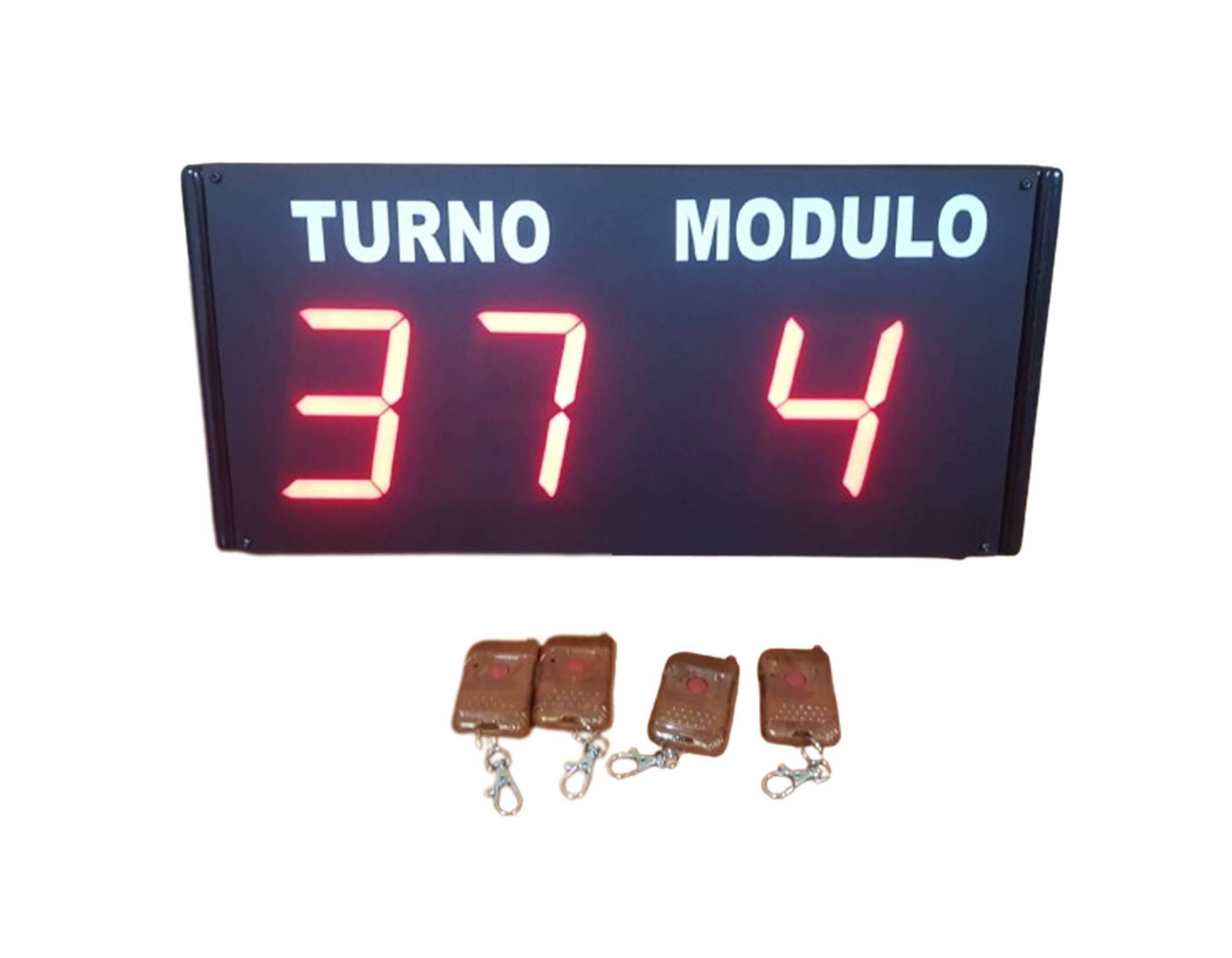 .- El turno modulo es una pantalla con dos dígitos que indican el número que esta llamando y un dígito que indica el módulo desde donde se esta llamando al cliente o publico. Emite un sonico cada vez que avanza el númeroy muestra el modulo que llama.